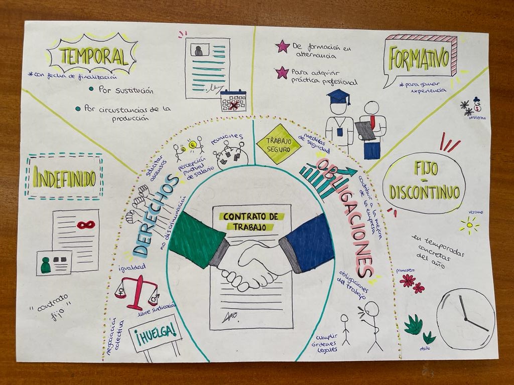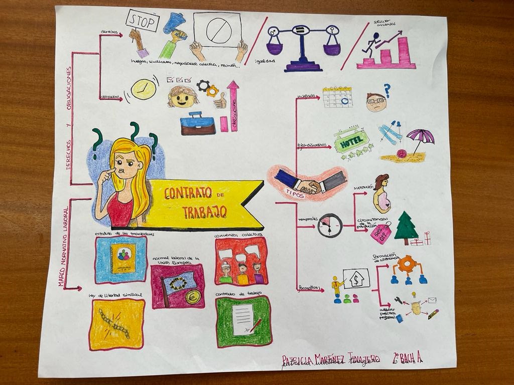 En 2º de Bachillerato, en la asignatura de Fundamentos de Administración y Gestión, se han trabajado los tipos de contratos a través de los Visual Thinking.